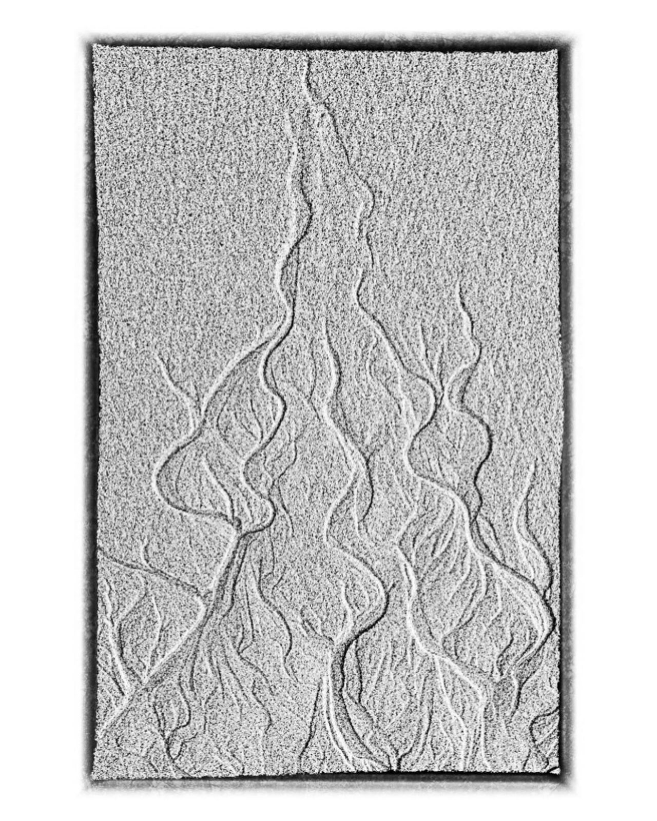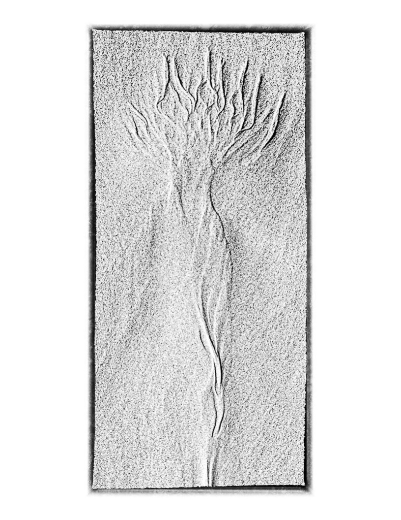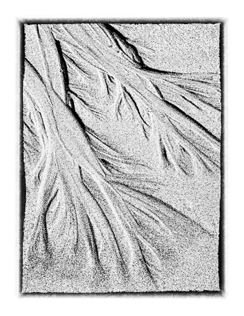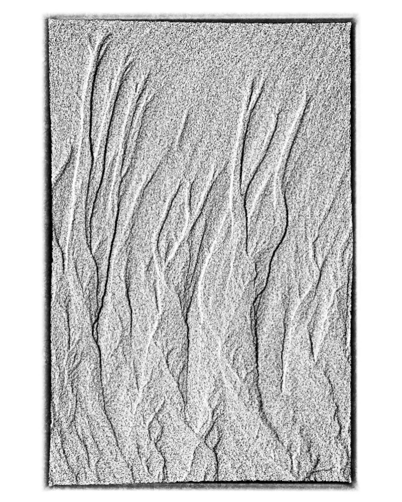 The beauty of these often intricate and always unique patterns is the motivation for this series of Limited Edition prints.    By capturing these in black and white we’re able to focus in on and draw out the interplay of light contrasted across the sand patterns, which then ignite ideas of other familiar likenesses in the imagination.