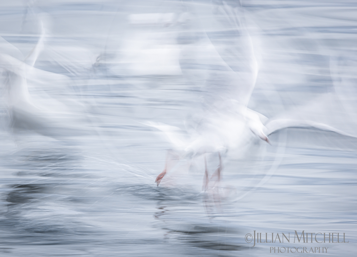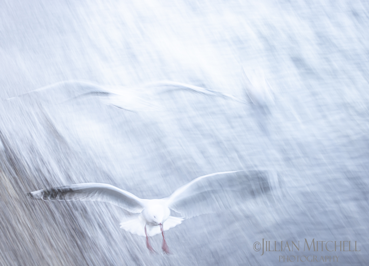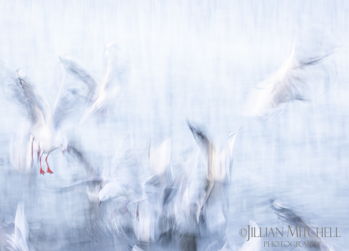 To produce this series of Limited Edition seagull images, which are impressionistic in style with a painterly effect, has involved photographing these birds using Intentional Camera Movement techniques combined with very slow shutter speeds to emphasise movement, create blur and transform what may be considered quite ordinary more towards the abstract extrordinary.
